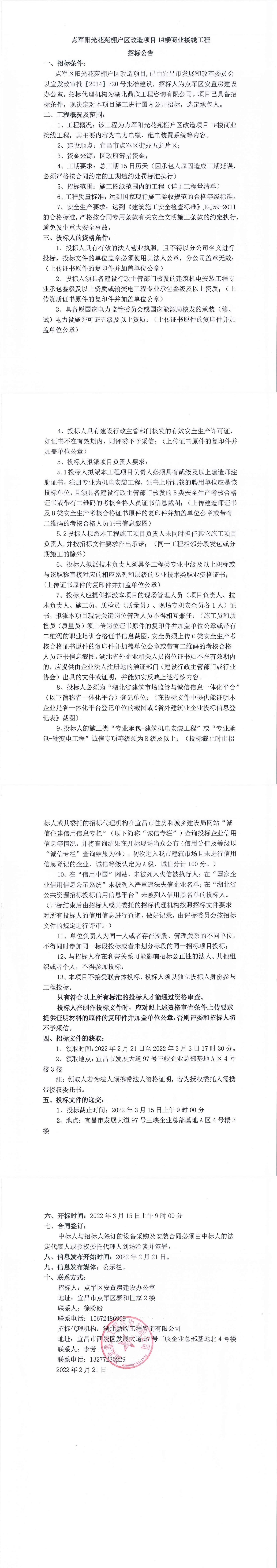 點(diǎn)軍陽光花苑棚戶區(qū)改造項(xiàng)目1#樓商業(yè)接線工程招標(biāo)公告