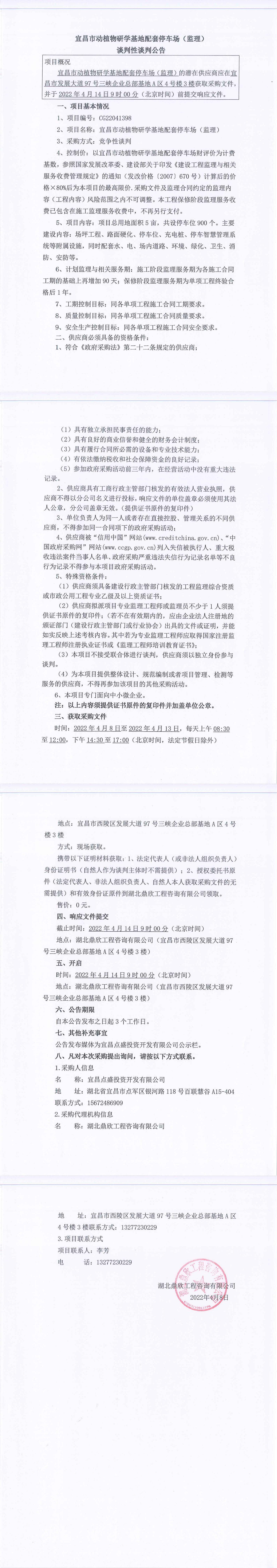 宜昌市動(dòng)植物研學(xué)基地配套停車場(chǎng)監(jiān)理談判公告