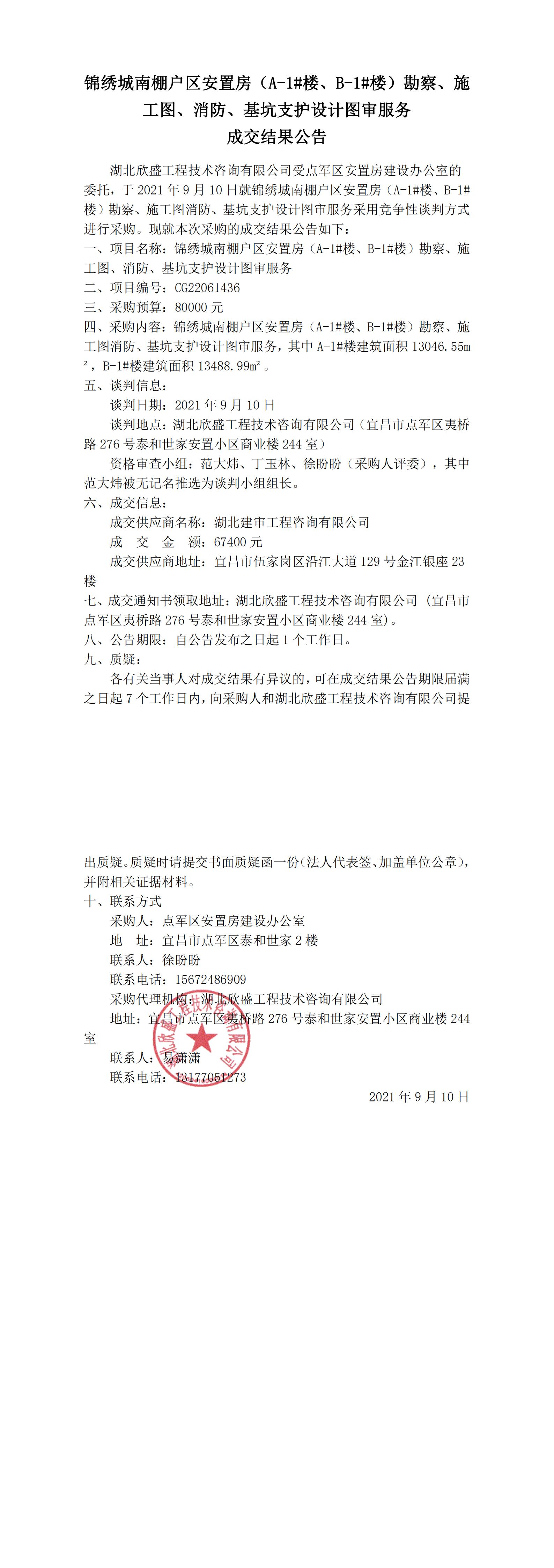 錦繡城南棚戶區(qū)安置房(A-1#樓、B-1#樓)勘察、施工圖、消防、基坑支護設(shè)計圖審服務成交結(jié)果公告