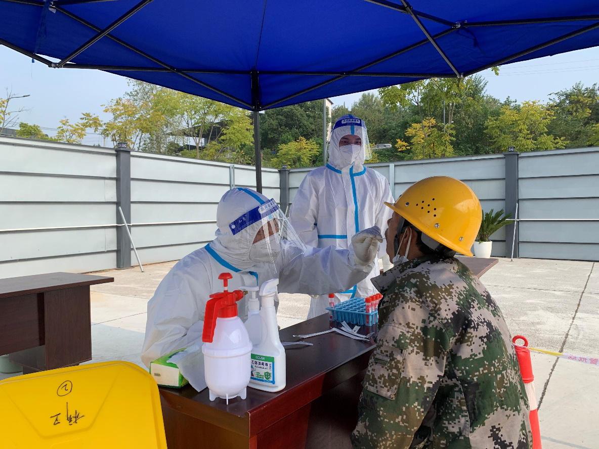 11月5日,為響應(yīng)區(qū)政府防疫部門有關(guān)防疫要求,全面筑牢疫情防線,切實保障全體施工人員的身體健康和生命安全,點(diǎn)盛公司聯(lián)動點(diǎn)軍區(qū)橋邊衛(wèi)生院和國機(jī)集團(tuán)在奧錦花園安置房(三期)項目部開展核酸采樣試點(diǎn)運(yùn)行工作。取得核酸采樣合格證的奧錦花園三期項目安全員李懿、龍明超為本項目300余名工人順利的完成了核酸采樣工作。