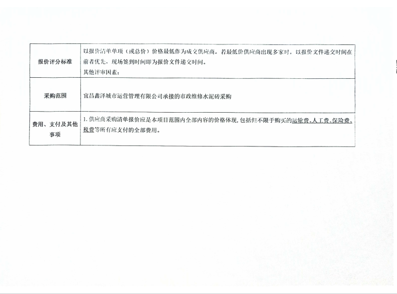 宜昌鑫澤城市運(yùn)營管理有限公司市政維修水泥磚采購項(xiàng)目詢價(jià)公告