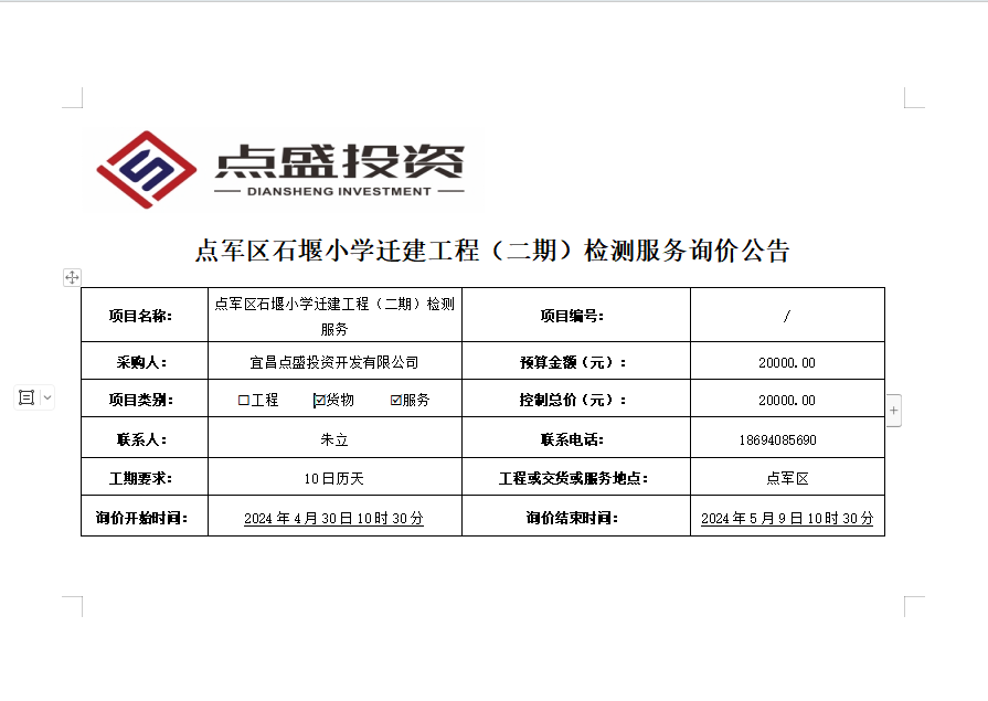 點軍區(qū)石堰小學遷建工程(二期)檢測服務(wù)詢價公告