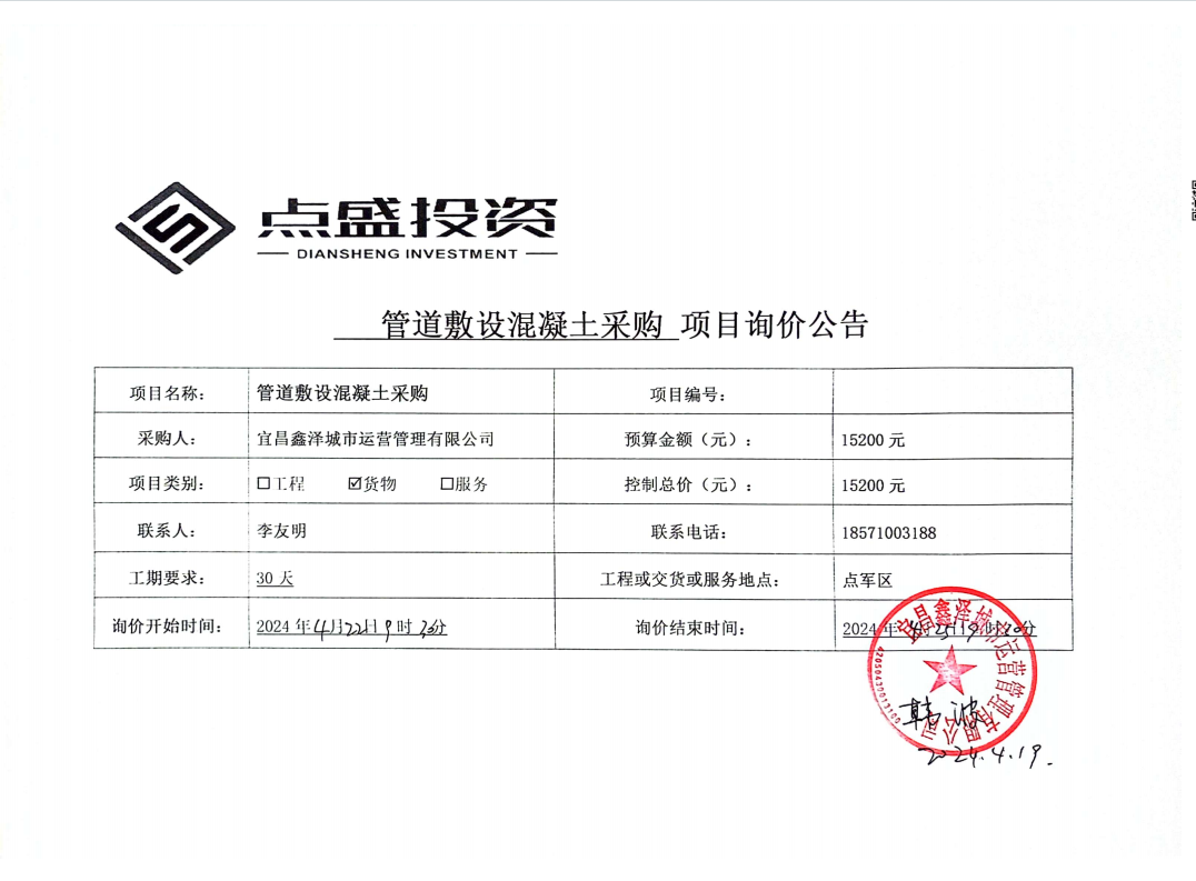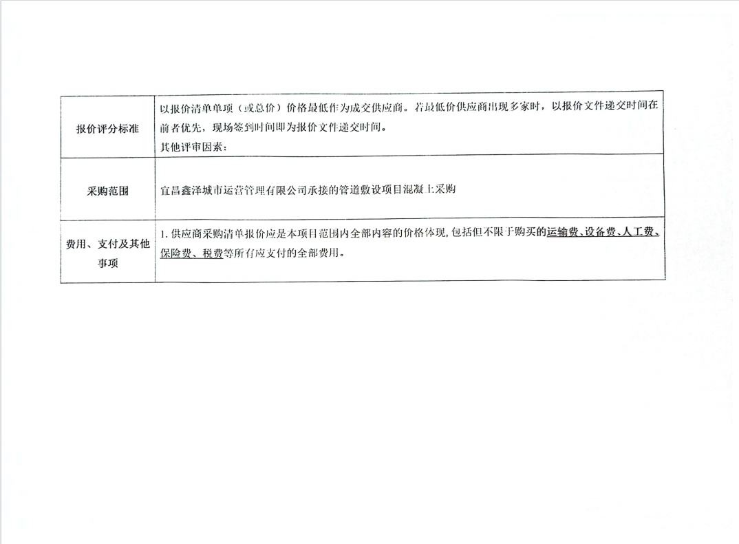 管道敷設(shè)混凝土采購項目詢價公告