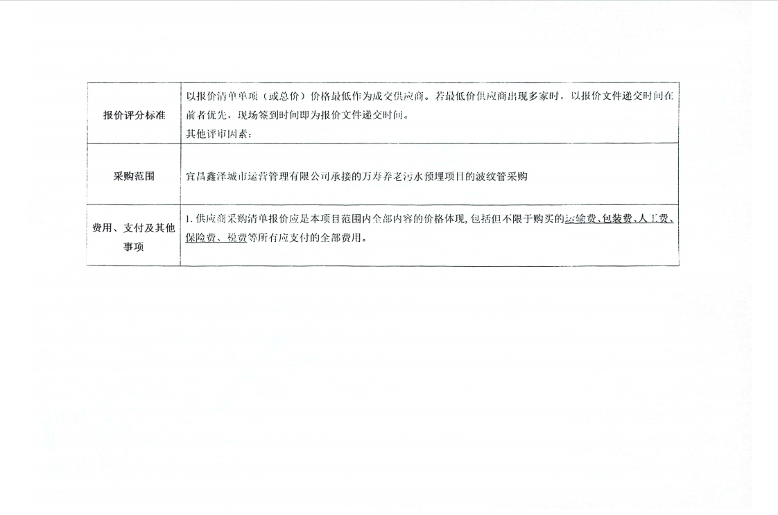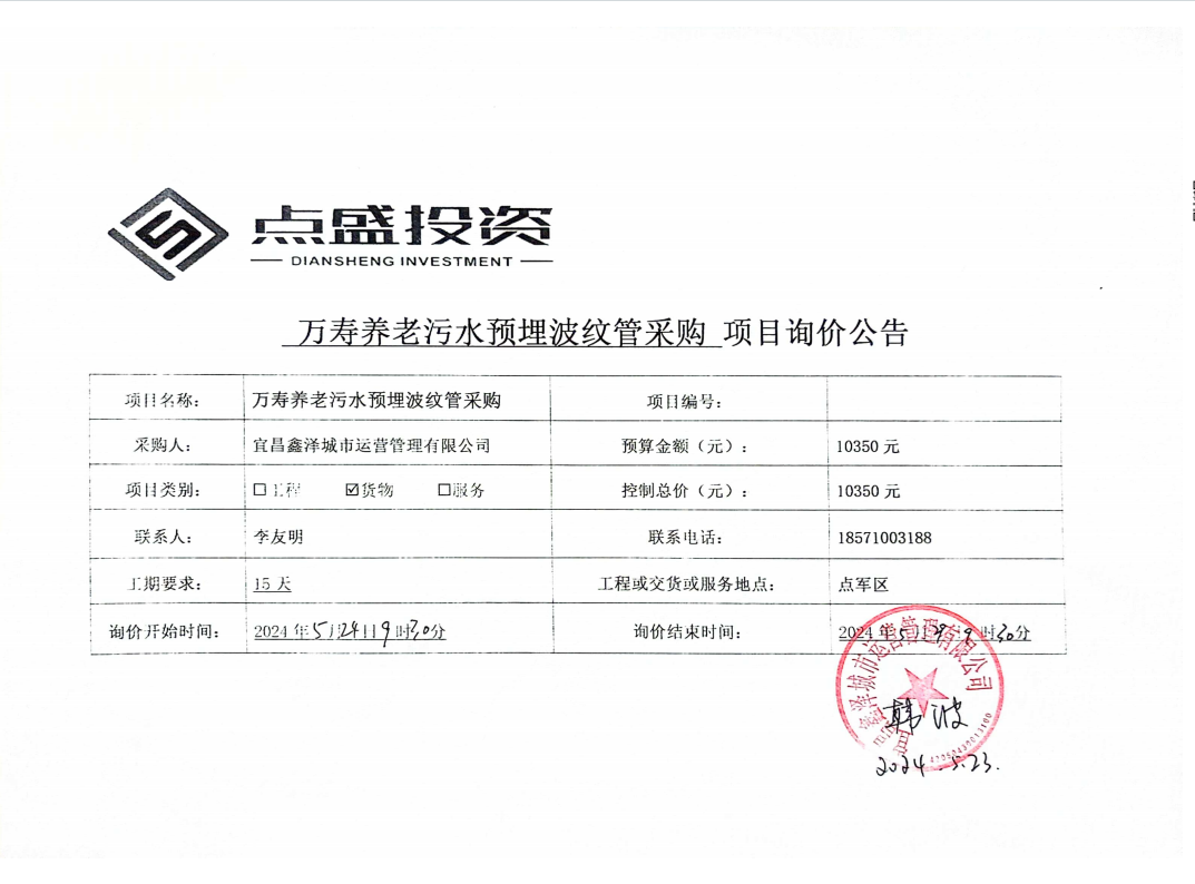 萬壽養(yǎng)老污水預(yù)埋波紋管采購(gòu)詢價(jià)公告