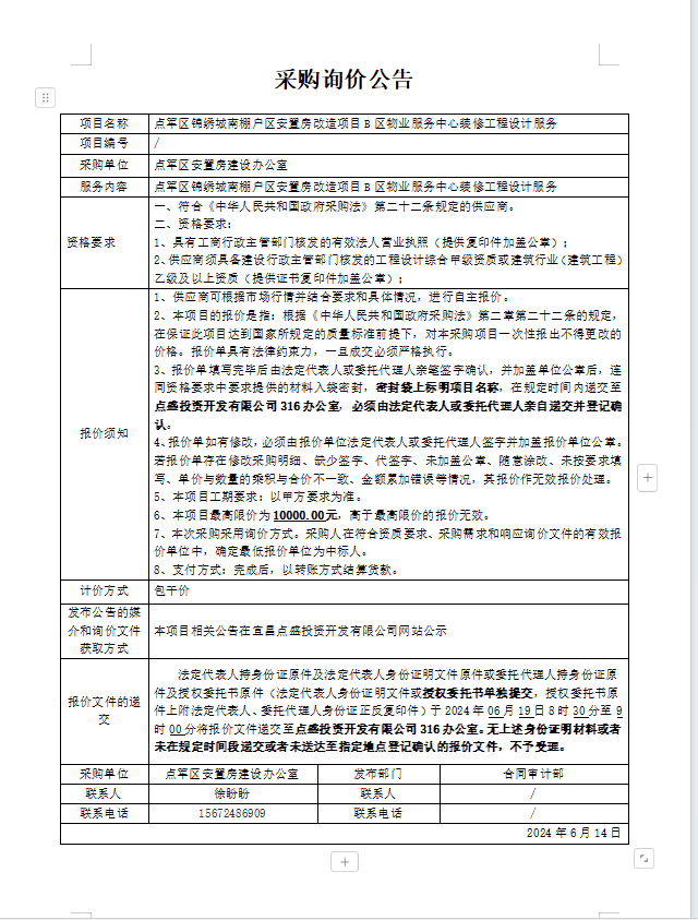 點軍區(qū)錦繡城南棚戶區(qū)安置房改造項目B區(qū)物業(yè)服務(wù)中心裝修工程設(shè)計服務(wù)詢價公告