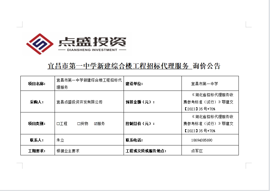 宜昌市第一中學新建綜合樓工程招標代理服務(wù)詢價公告