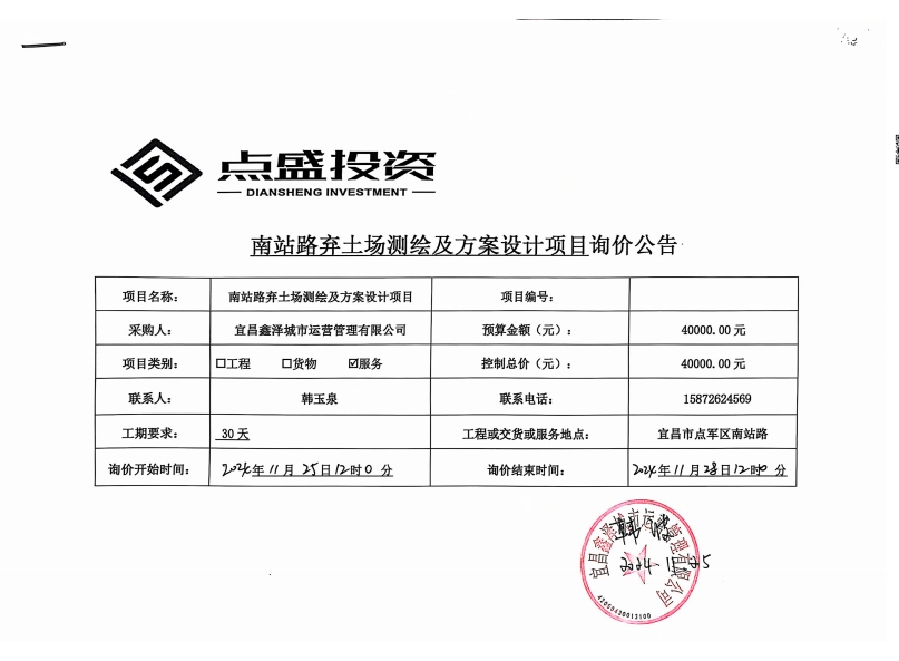 南站路棄土場測繪及方案設(shè)計項目詢價公告