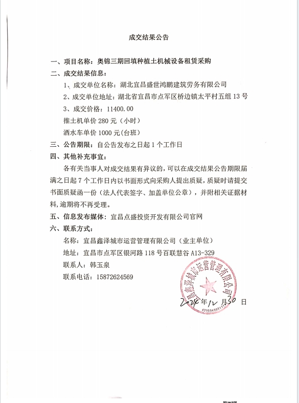 奧錦三期種植土回填機械設(shè)備租賃采購成交公告