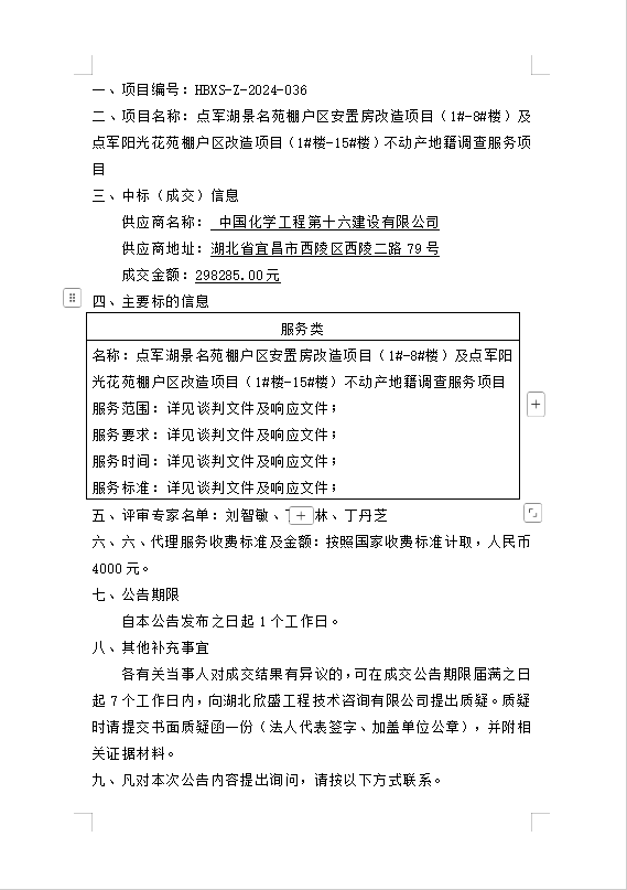 點軍湖景名苑棚戶區(qū)安置房改造項目(1#-8#樓)及點軍陽光花苑棚戶區(qū)改造項目(1#樓-15#樓)不動產(chǎn)地籍調查服務項目成交公告